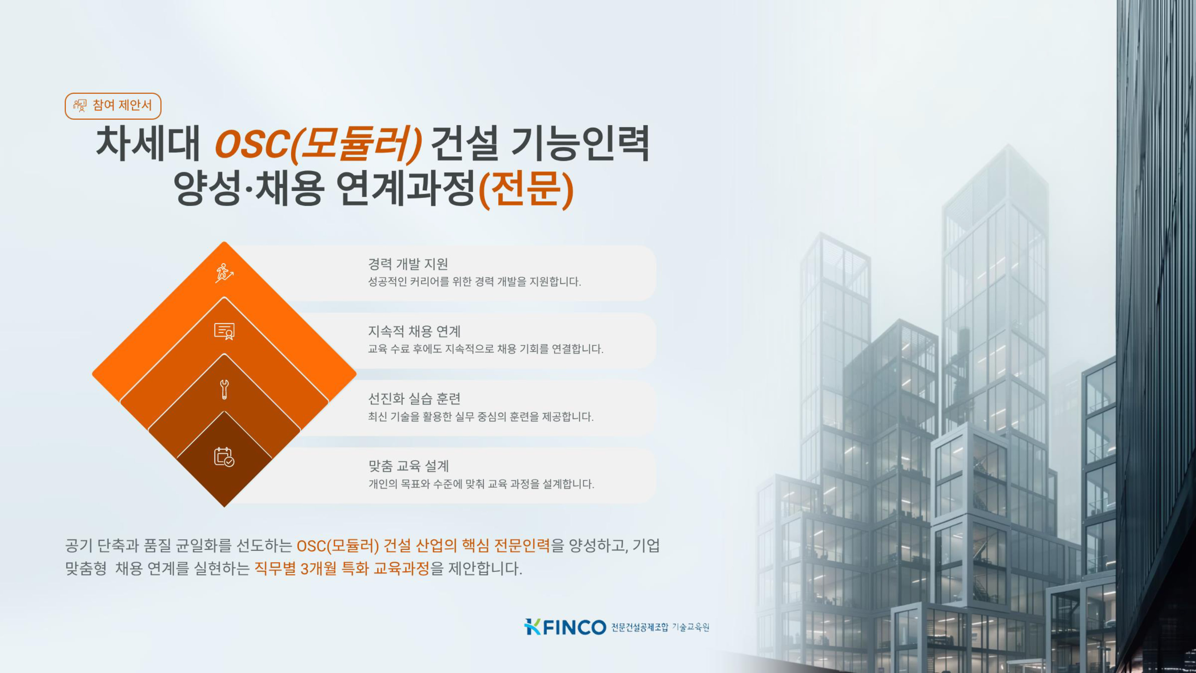 [전문건설공제조합] 차세대 OSC(모듈러) 건설 기능인력 양성 채용 연계과정(전문) 참여 제안